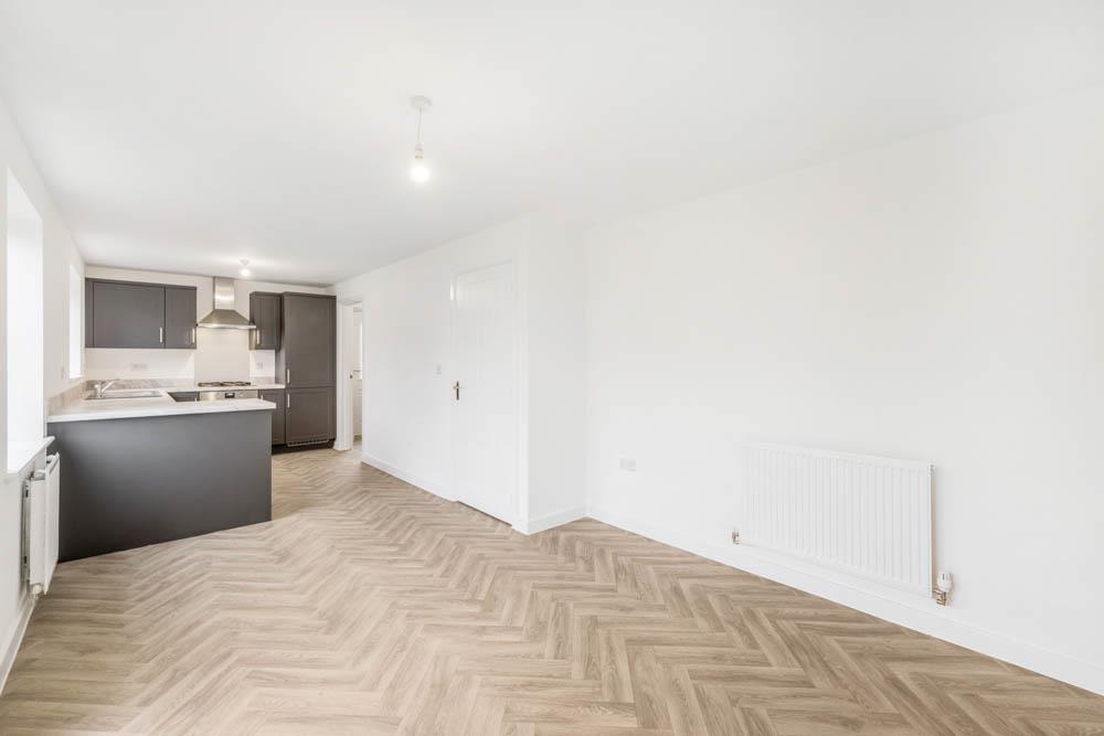 UPVC door to side. Matching base units with work surfaces over. Space and plumbing for washing machine. Space for tumble dryer. Radiator. LVT flooring. Boiler.