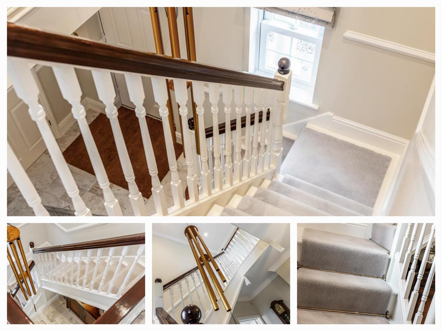 Upstairs, the home continues to impress with a galleried landing leading to four generous double bedrooms. The principal suite features a tastefully designed en-suite, while the main family bathroom is equally luxurious, boasting a separate double shower and a stunning freestanding bath.