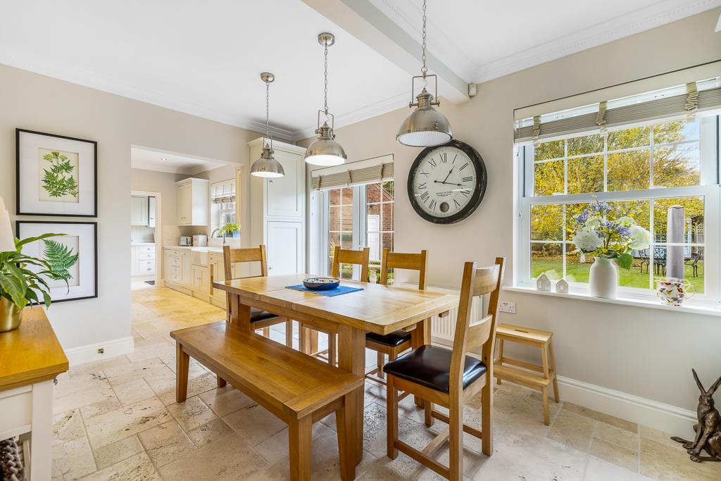 At the heart of the home is a beautiful Shaker-style kitchen, designed with both practicality and elegance in mind. This impressive space opens into a dedicated dining area, ideal for family gatherings and dinner parties. Completing the downstairs is a handy utility room, adding convenience and functionality to this already well-planned home.