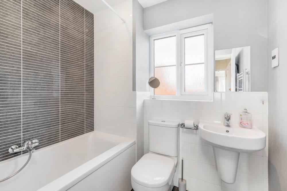 UPVC double glazed window to rear. Panelled bath with side mounted mixer tap over and mixer shower over. Toilet. Wash hand basin with mixer tap over. Wall mounted heated towel rail. Shaver point. Tiled splash backs. Extractor fan.