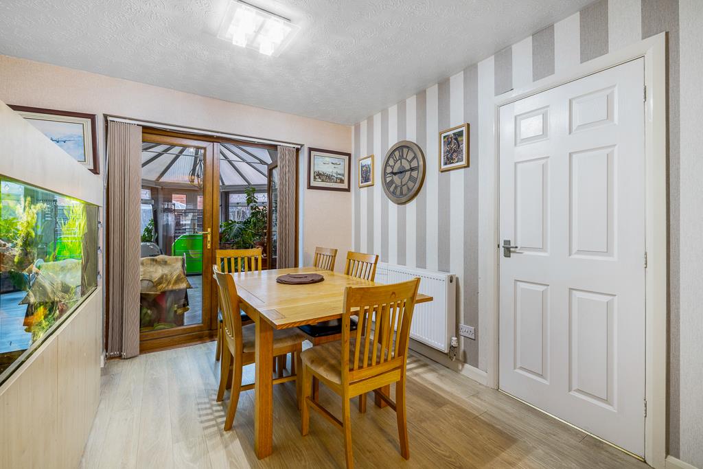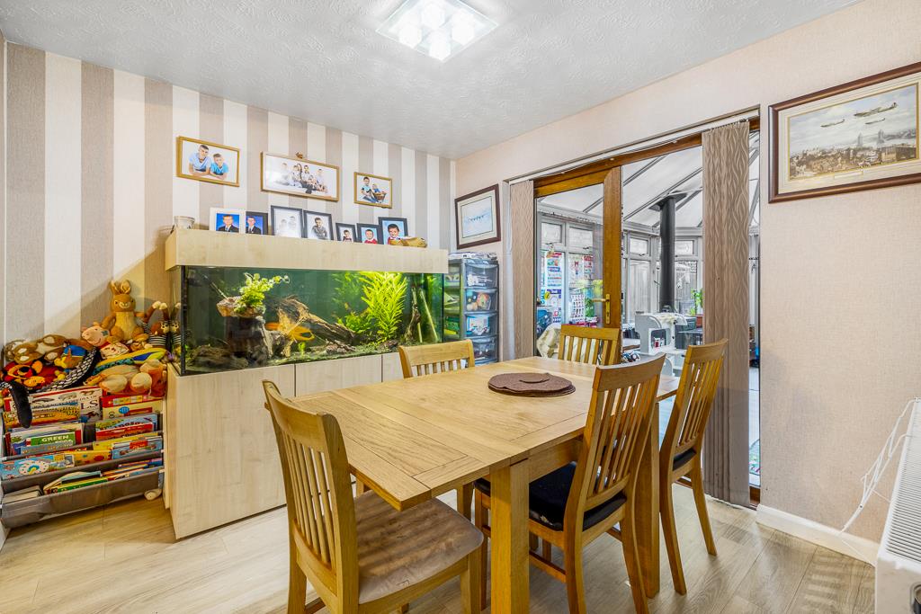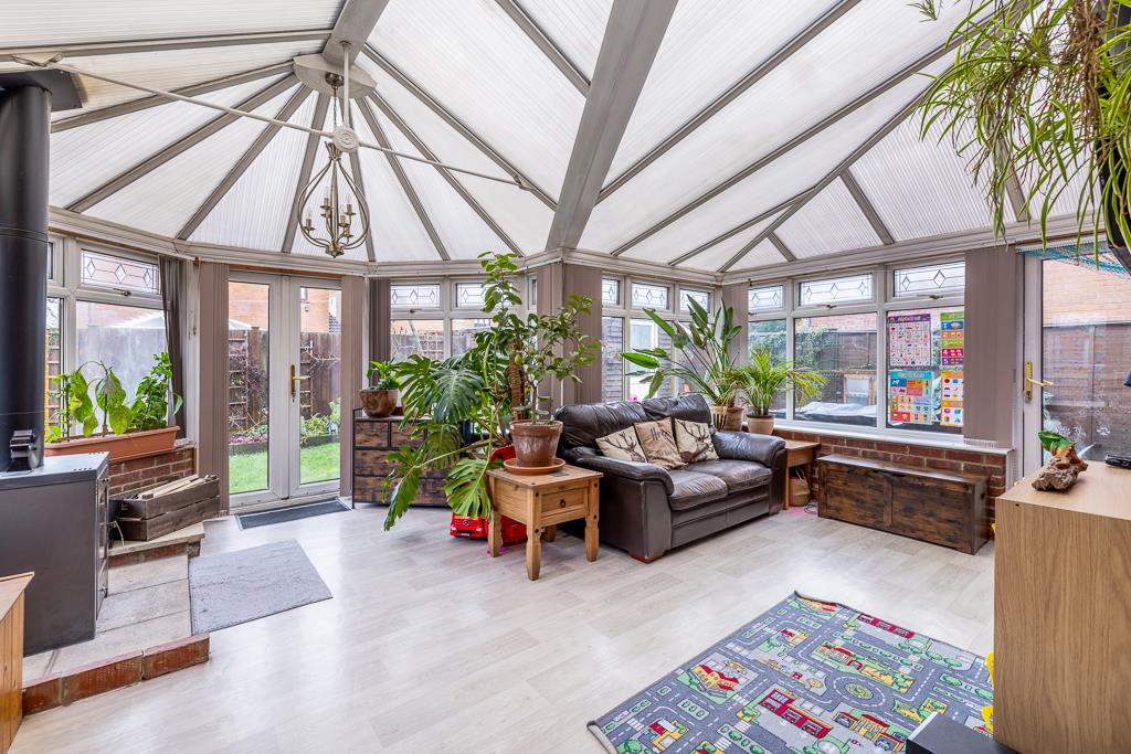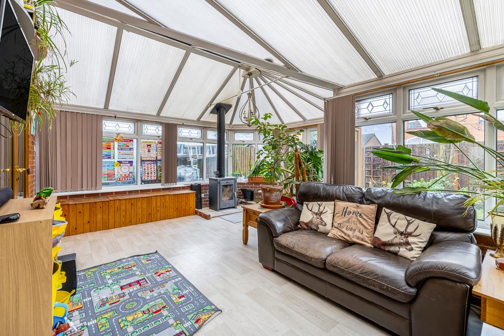 The property boasts a generous, flowing layout including an open lounge diner, a well appointed kitchen breakfast room, a large and versatile conservatory, and a partially converted garage that now provides a practical and spacious utility room. Upstairs, there are three bedrooms, with the main bedroom benefiting from a neat en-suite.