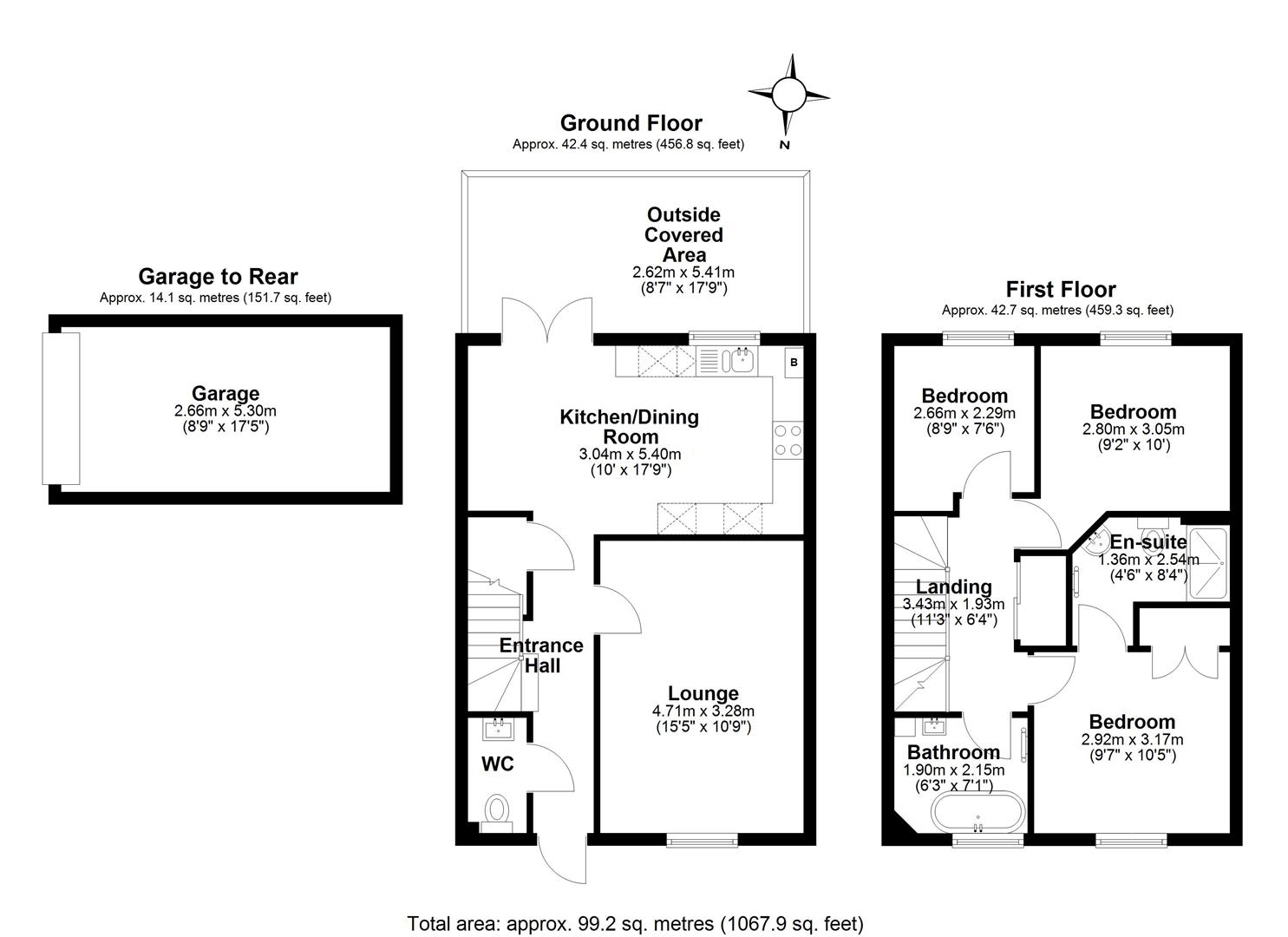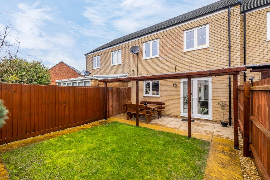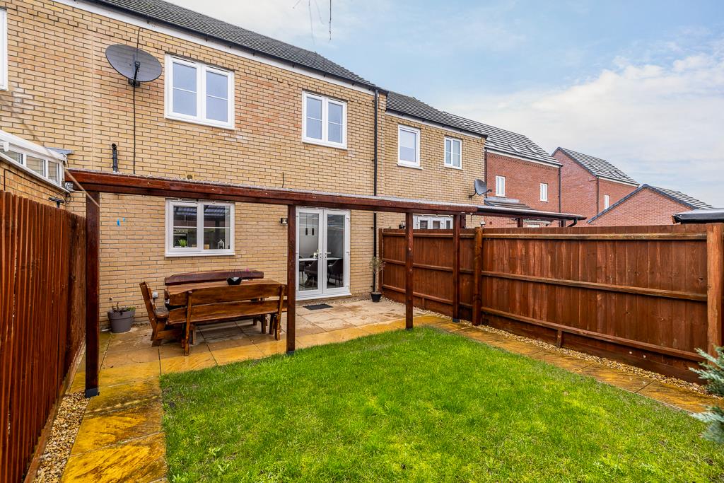 The rear garden is enclosed by timber fencing. Laid to lawn. Covered patio seating area (2.62m x 5.41m). Footpath leading to the rear gate where there is a single garage and off road parking for 1-2 vehicles.