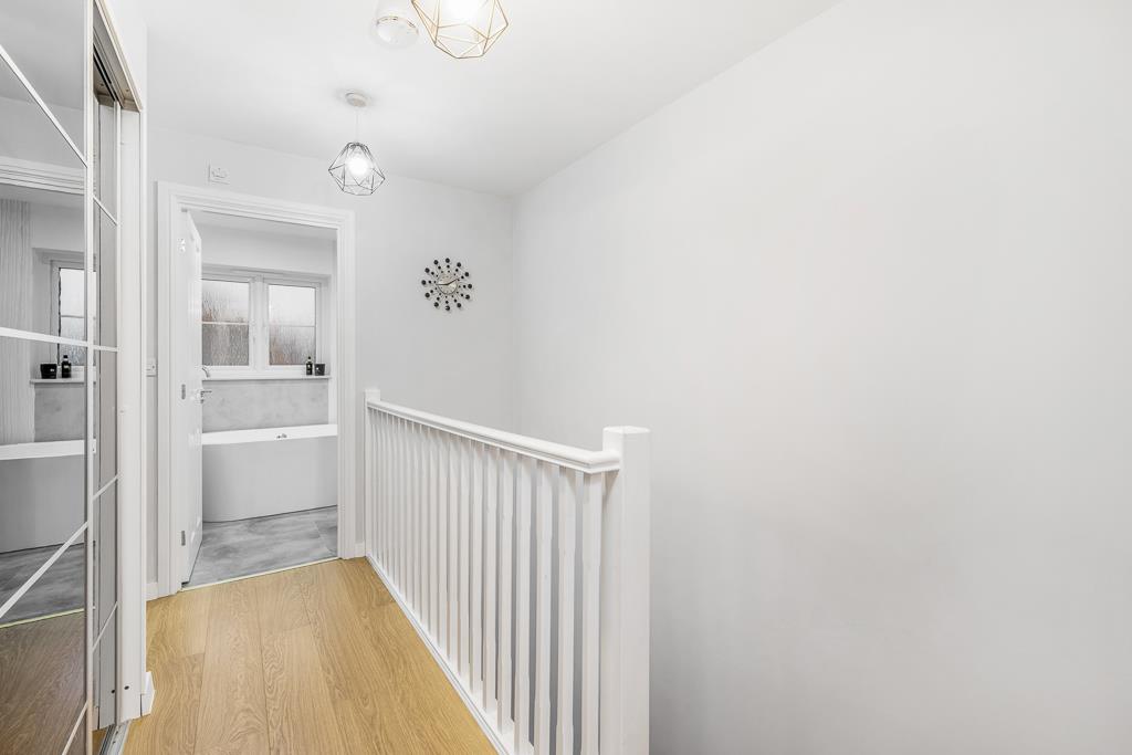 Skimmed ceiling. Loft access. Built in sliding door cupboard. Doors to bedrooms and bathroom.