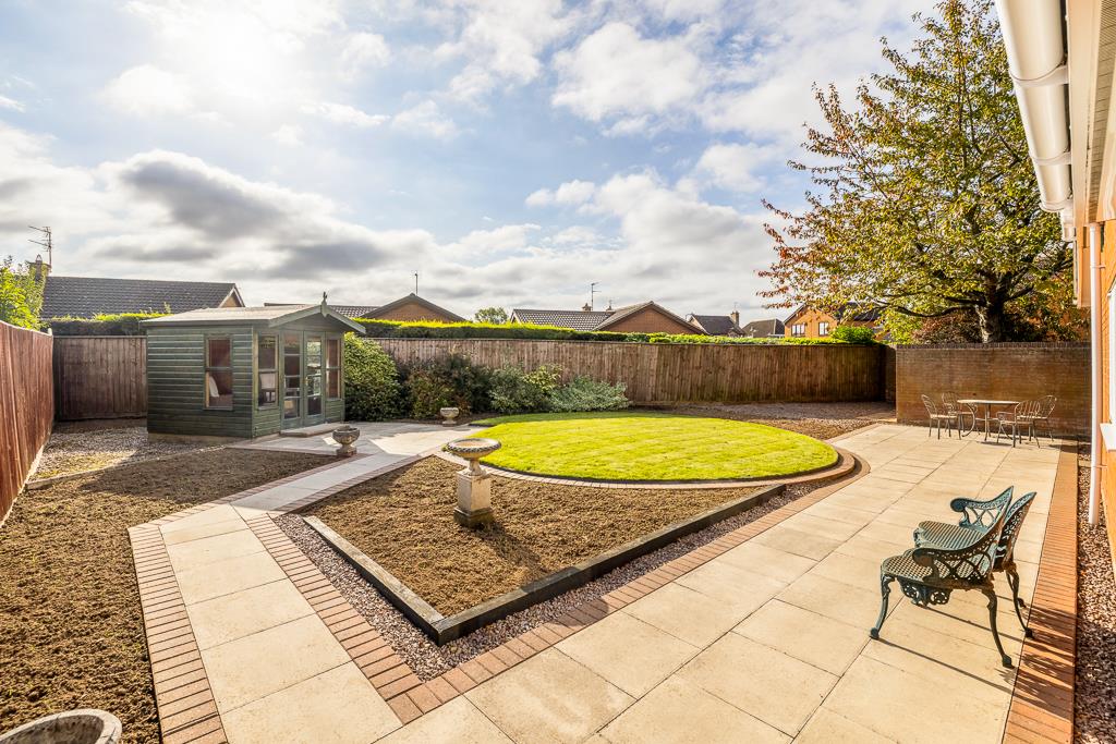 Side gated access and pathway leads to the rear garden which is enclosed by timber fencing and brick wall. Landscaped to include generous patio seating area. Established lawn with borders ready for planting. To the rear of the plot a further patio area. Outside lighting and cold water tap available.