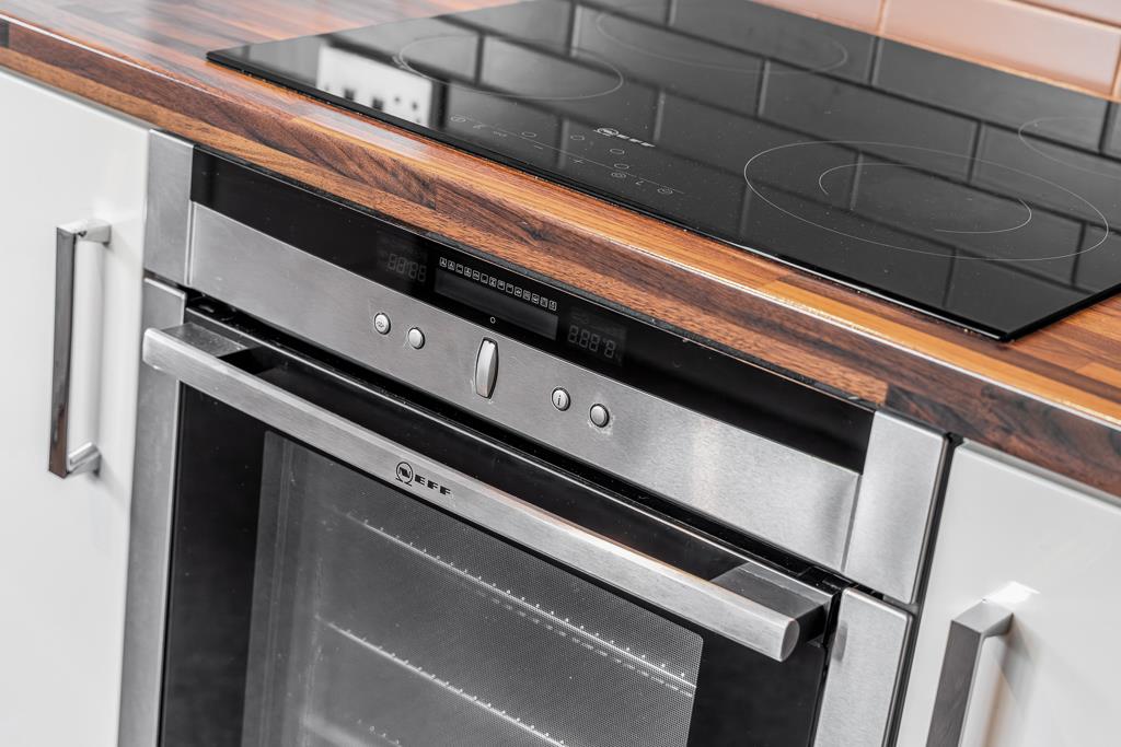 PVC double glazed windows to front and side. Door to side. Radiator. Fitted full height and base units with roll edge work surface and tiled splash back. Four ring Neff electric hob with capped off gas point behind. Stainless steel Neff extractor hood over. Integrated Neff electric oven and grill under. Composite sink and drainer with chrome mixer tap over. Space and plumbing for washing machine, slimline dishwasher and tumble dryer. Space for fridge/freezer. Wall mounted main gas Worcester central heating boiler.