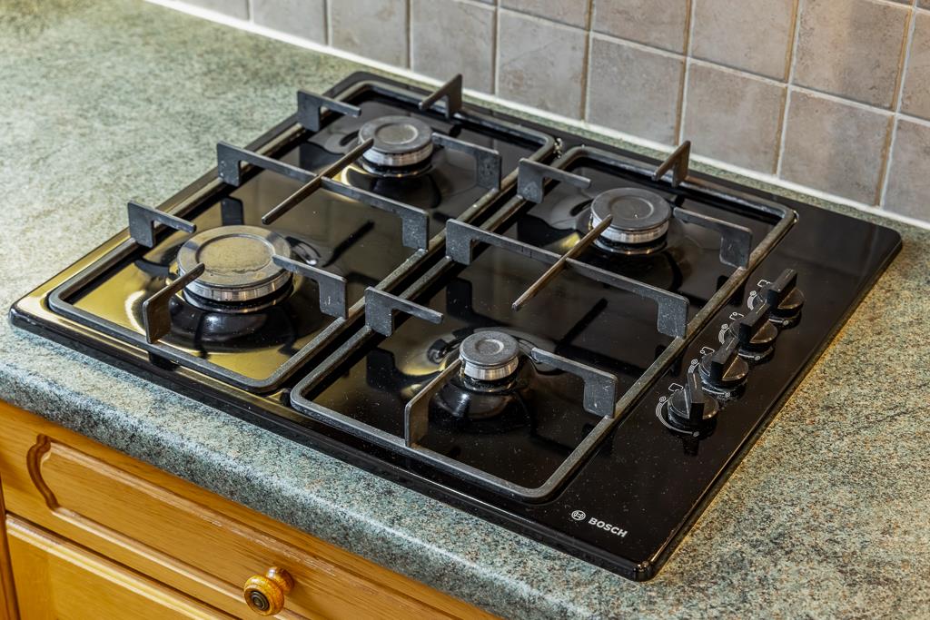 UPVC window to rear and side. Matching range of base and eye level units with work surfaces over. Tiled effect vinyl flooring. Composite sink unit with drainer and mixer tap. Tiled splash back. Four ring gas hob with extractor over. Built in Bosch eye level oven and grill. Storage cupboard with shelving housing the boiler. Integrated fridge. Space and plumbing for dishwasher.