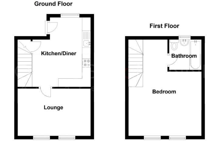 Double glazed entrance door to side. PVC double glazed window to rear. Coving to ceiling. Fitted with a matching range of wall and base units with roll edge work surface over. Tiled splash backs. Four ring gas hob with extractor hood over and electric oven and grill under. Stainless steel sink and drainer with chrome mixer tap. Space and plumbing for washing machine. Space for fridge freezer. Wall mounted mains gas Worcester central heating boiler. Stairs to first floor landing. Built in understairs storage cupboard with wall mounted electric consumer unit. Radiator. Laminate wood flooring.
