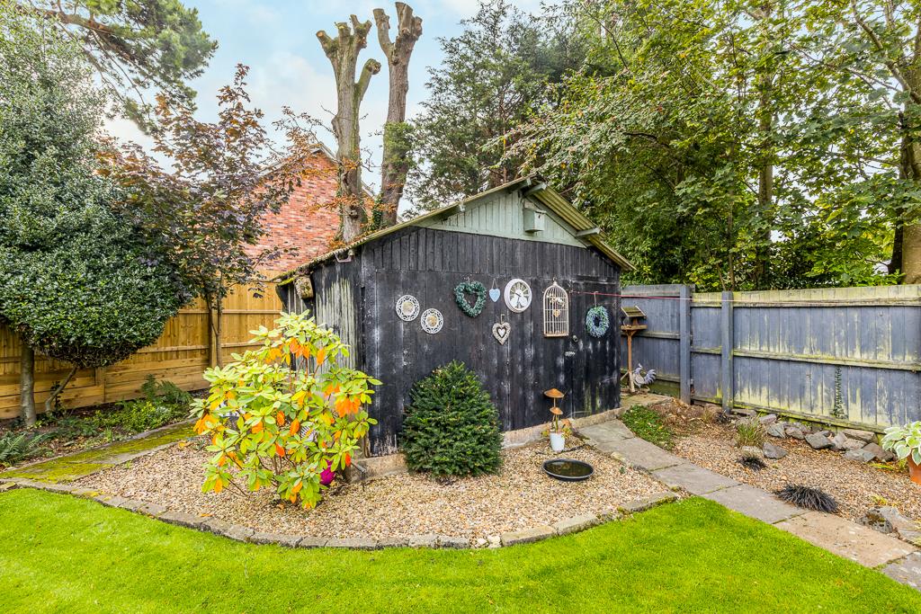 Externally, the home boasts ample off-road parking leading to a single garage. To the rear, a generous garden provides the perfect space for entertaining, featuring a covered patio seating area, a brick-built BBQ area, and a useful workshop.