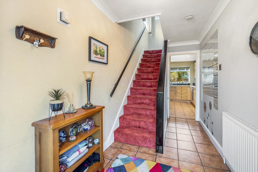 Coving to ceiling. Tiled flooring. Radiator. Stairs to first floor landing. Understairs storage cupboard. Door opening to kitchen/diner.