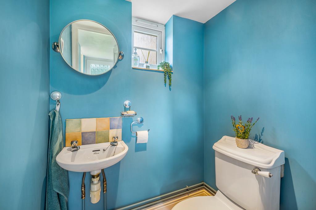 PVC double glazed window to front. Skimmed ceiling. Recessed spot lighting. Fitted close coupled toilet. Wall mounted wash hand basin with tiled splash back.