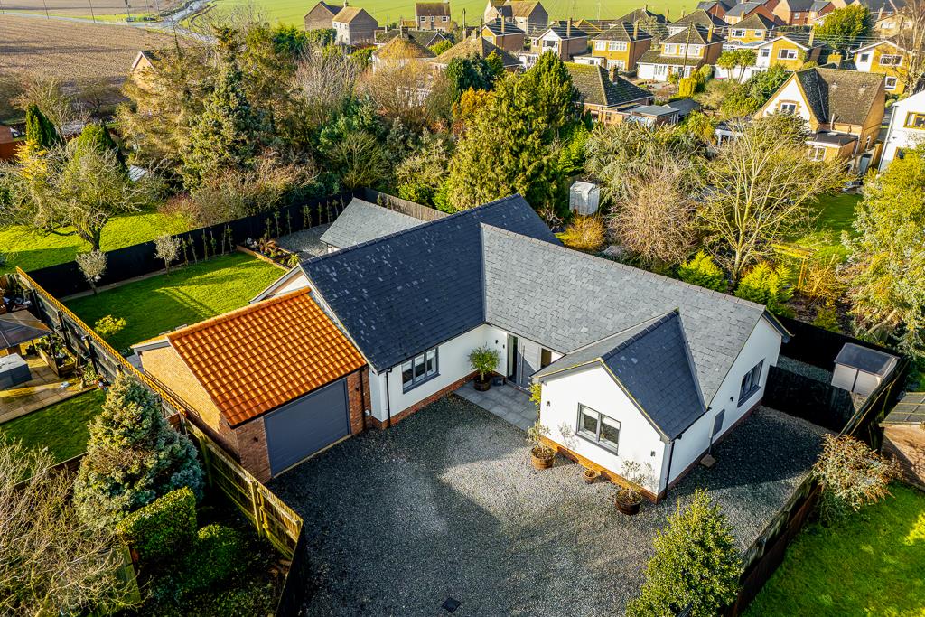 Tucked away at the end of a long private drive in the heart of Moulton, this exceptional newly built bungalow is a true hidden gem. Finished to an outstanding standard, the home offers beautifully designed, light-filled spaces that flow effortlessly from room to room, creating a perfect balance of luxury, comfort and style. The heart of the home is an impressive open-plan living space centred around a striking kitchen island, ideal for both everyday living and entertaining, with natural light pouring in and seamless access to the south facing landscaped garden. Outside, the setting is just as impressive, with generous parking with an oversized garage with an electric sectional door, a sense of privacy, and thoughtfully designed outdoor spaces that complete this stunning home