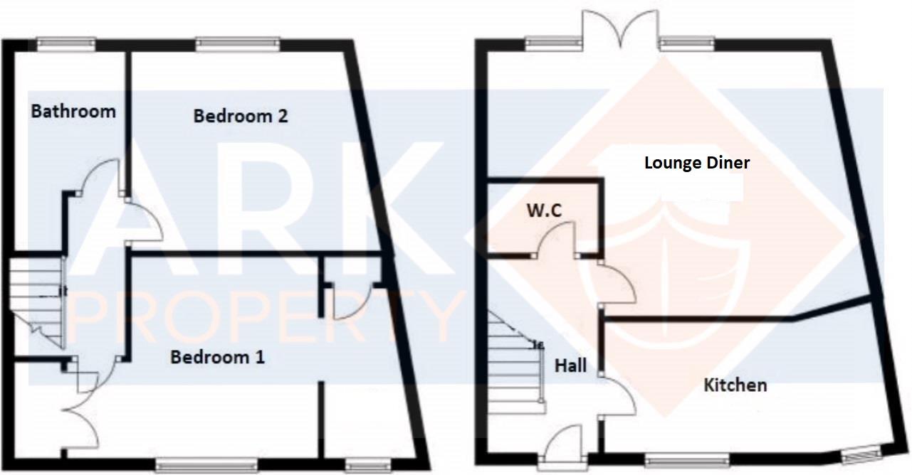 The property features a welcoming entrance hallway with WC, a modern kitchen, and a spacious lounge. Upstairs offers two well-proportioned bedrooms and a stylish four-piece family bathroom.