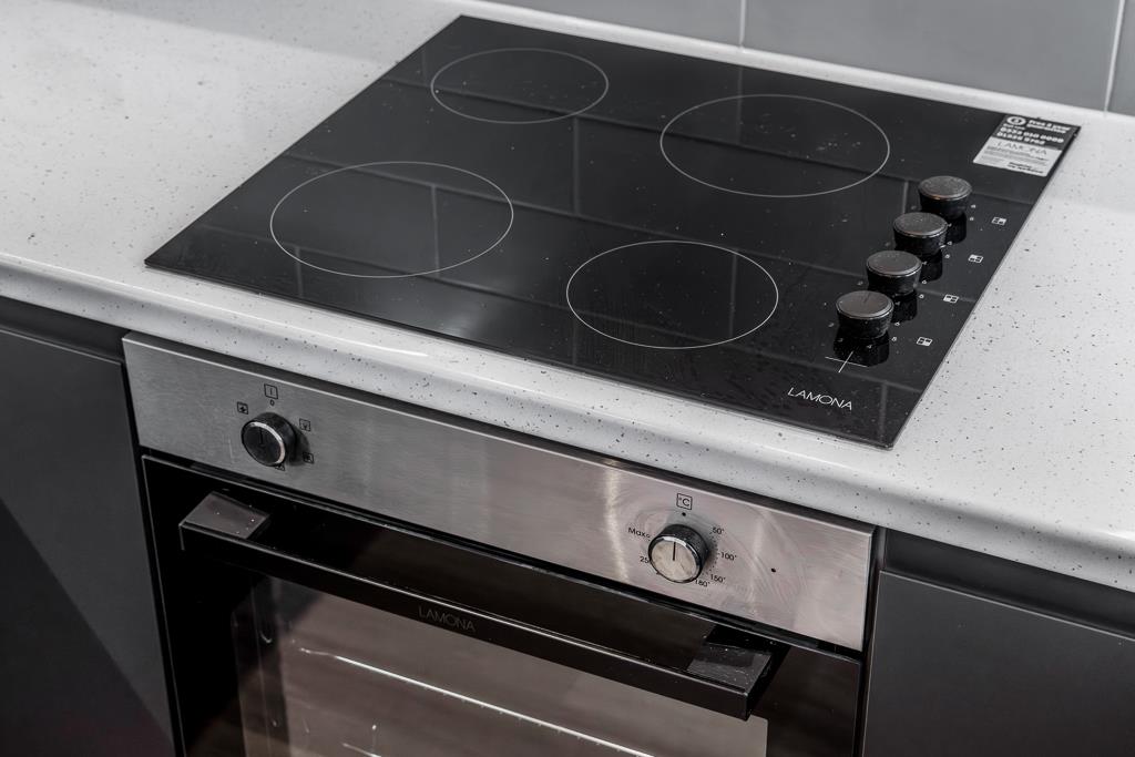 PVC double glazed windows and door to rear. Skimmed ceiling with recessed spot lighting. Laminate flooring. Radiator. Fitted with a matching range of base and eye level units. Roll edge work surface with tiled splash back. Four ring electric hob with stainless steel extractor hood over. Electric oven and grill under. Stainless steel sink drainer with chrome mixer tap over. Integrated fridge/freezer. Space and plumbing for washing machine.