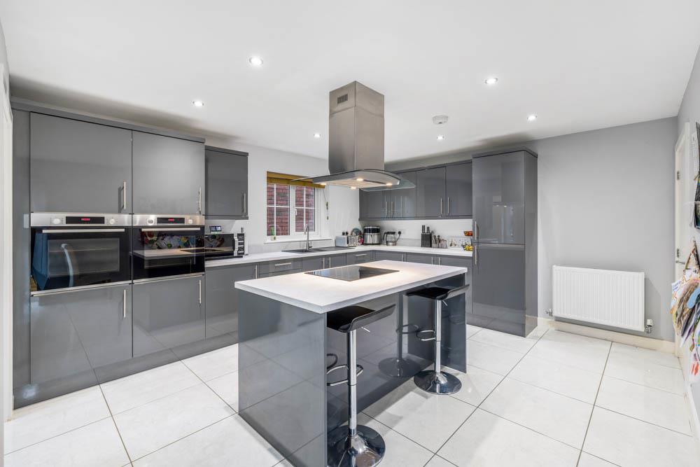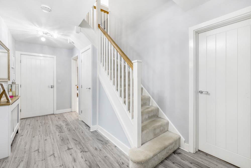 Built for busy family life, this generous home offers space to spread out and come together with ease. From the moment you walk in, the layout feels practical and welcoming, with multiple living zones that make juggling work, school, and downtime effortless. The heart of the home is the spacious kitchen with its central island — a natural hub for homework, casual meals, and weekend entertaining. Upstairs, four well-proportioned bedrooms provide room for everyone, including two with en-suites that help mornings run smoothly. Outside, the low-maintenance garden is ideal for children at play or relaxed family evenings, while the driveway and double garage take care of parking and storage. Finished in calm, neutral tones throughout, this is a home where a family can settle in and grow.