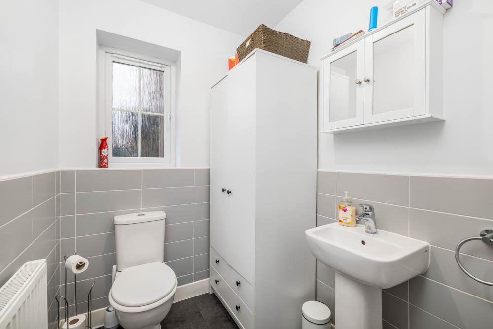 PVC double glazed window to rear. Skimmed ceiling. Fitted with a two piece suite comprising, pedestal wash hand basin and close coupled toilet with push button flush. Radiator. Vinyl flooring.