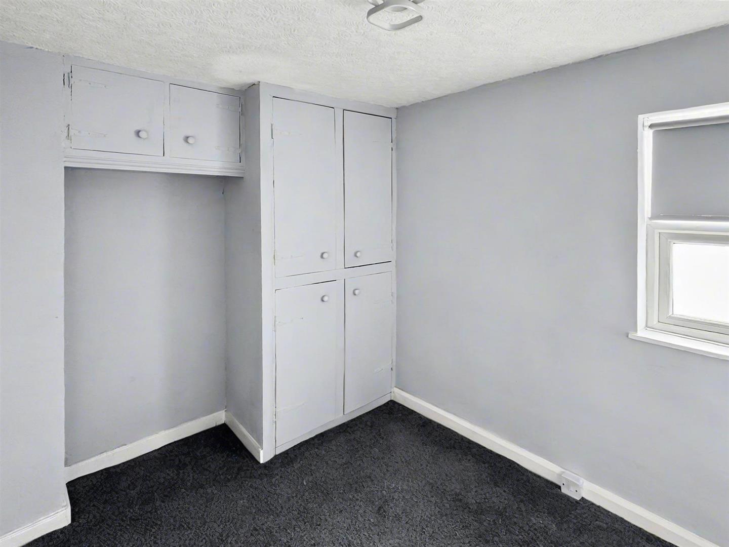 UPVC double glazed window to front elevation, radiator and storage cupboard.