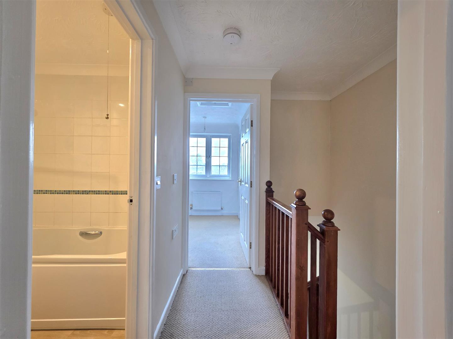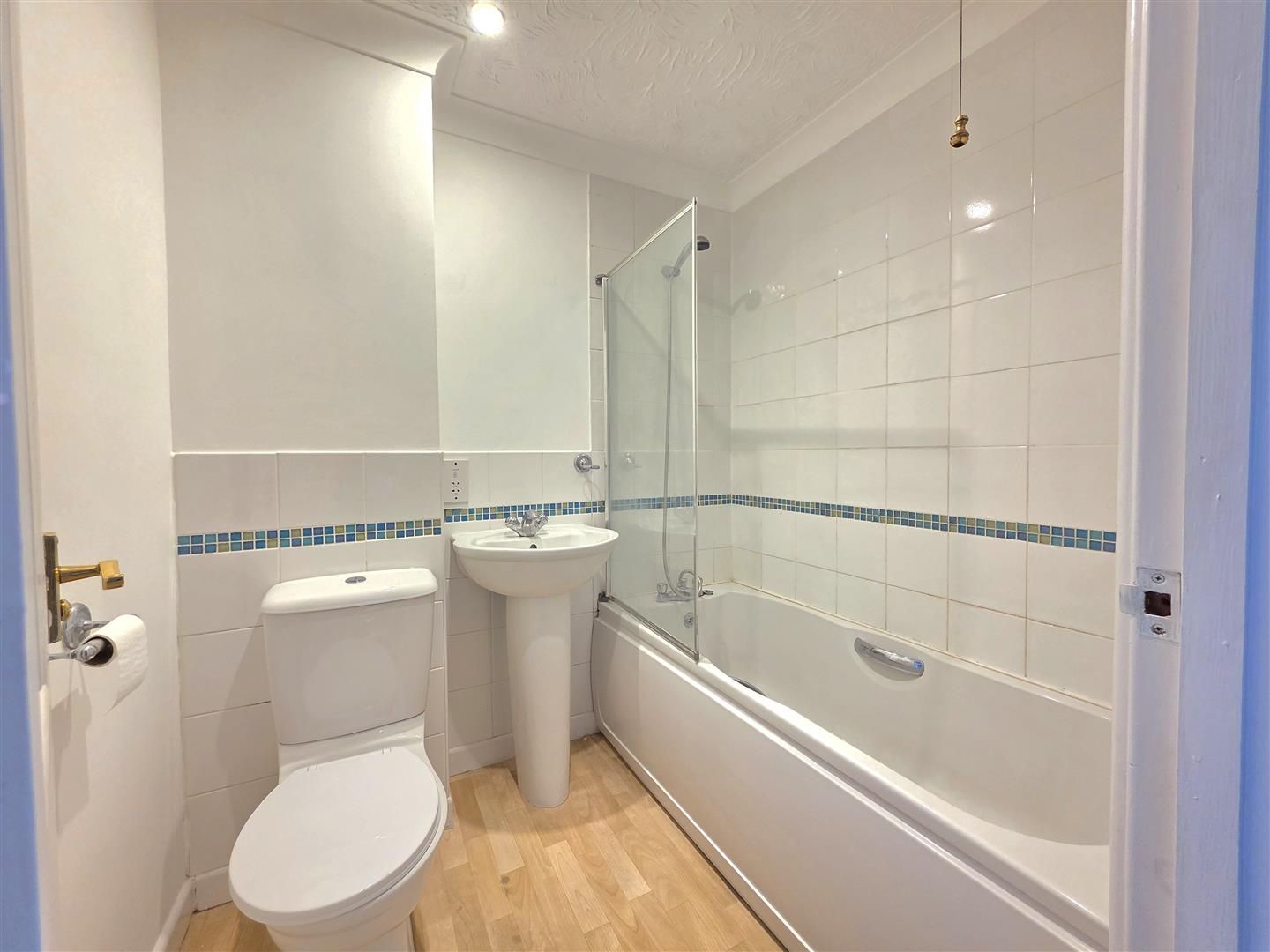 Coving to ceiling. Recessed spot lighting. Vinyl flooring. Radiator. Shaver point. Fitted panelled bath with chrome mixer tap and shower attachment over. Glass shower screen. Close coupled toilet with push button flush. Pedestal wash hand basin with chrome mixer tap. Partially tiled walls.